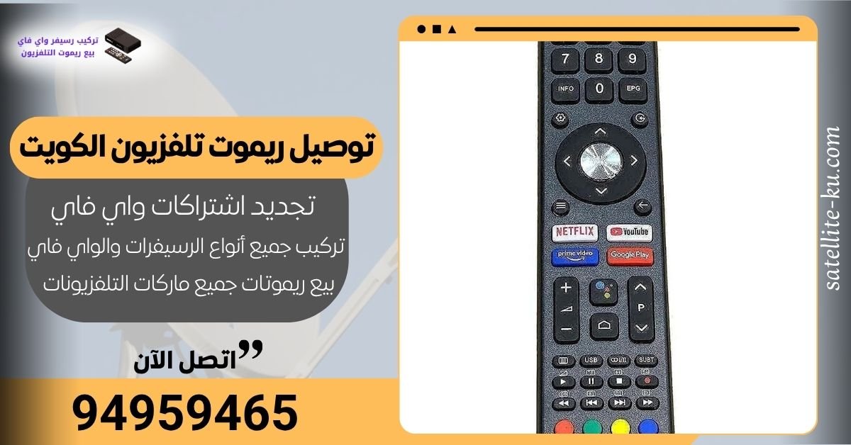 توصيل ريموت تلفزيون الكويت من أفضل الخدمات التي تقدمها شركتنا الرائدة في ذلك المجال، لأن الريموت يعتبر من أهم أجزاء توصيل الخدمة ما بين التليفزيون أو الشاشة والرسيفر، لذا فإنه لا بد من الاستعانة بشركة ذات خبرة كبيرة ومتخصصة في ذلك المجال مثل شركتنا، لترسل لك فني توصيل ريموت تحكم لجميع الماركات القادر على القيام بجميع أعمال توصيل خدمات الرسيفرات والستلايتات على مداراليوم وخلال الـ 24 ساعة وطوال أيام الأسبوع دون انقطاع أو تأخير.